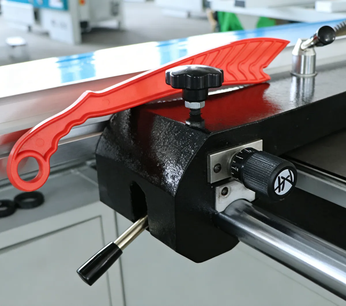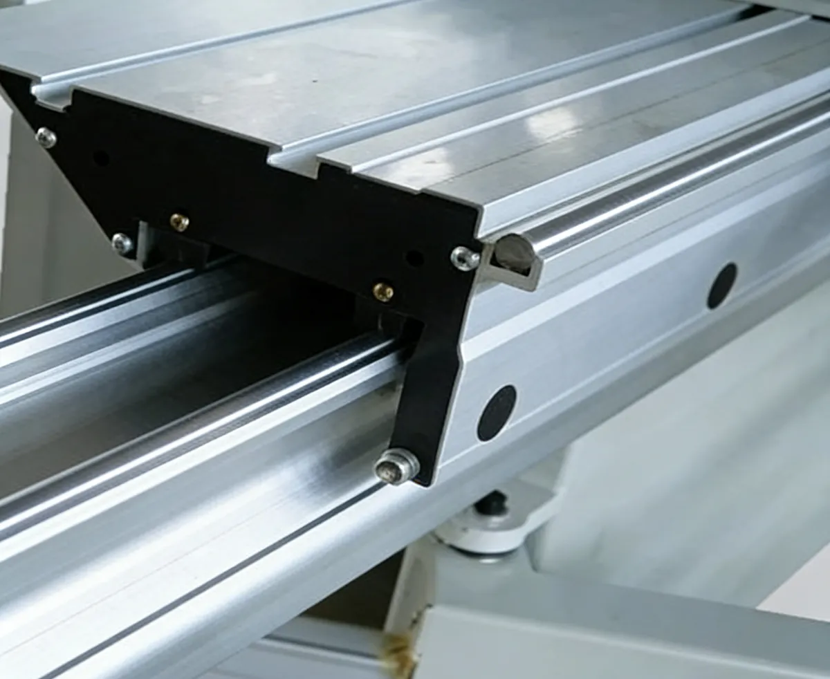 Mechanical Structure: Unlike traditional table saws that push material across a fixed worktable, this saw uses a sliding carriage to move the fixed material along a controlled linear path through the saw blade, ensuring high precision.